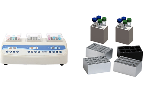 MiniT-H2C / MiniT-H3 are 3-in-1 mini dry bath incubator. The MiniT-H2C is a heating and cooling incubator and the MiniT-H3 is a heating only incubator with 3 individually controlled mini dry bath. Many aluminum blocks are available covering a range of tube sizes from 0.2ml, 0.5ml, 1.5ml or 2.0ml tubes blocks. These are suitable for labs with heavy work load.