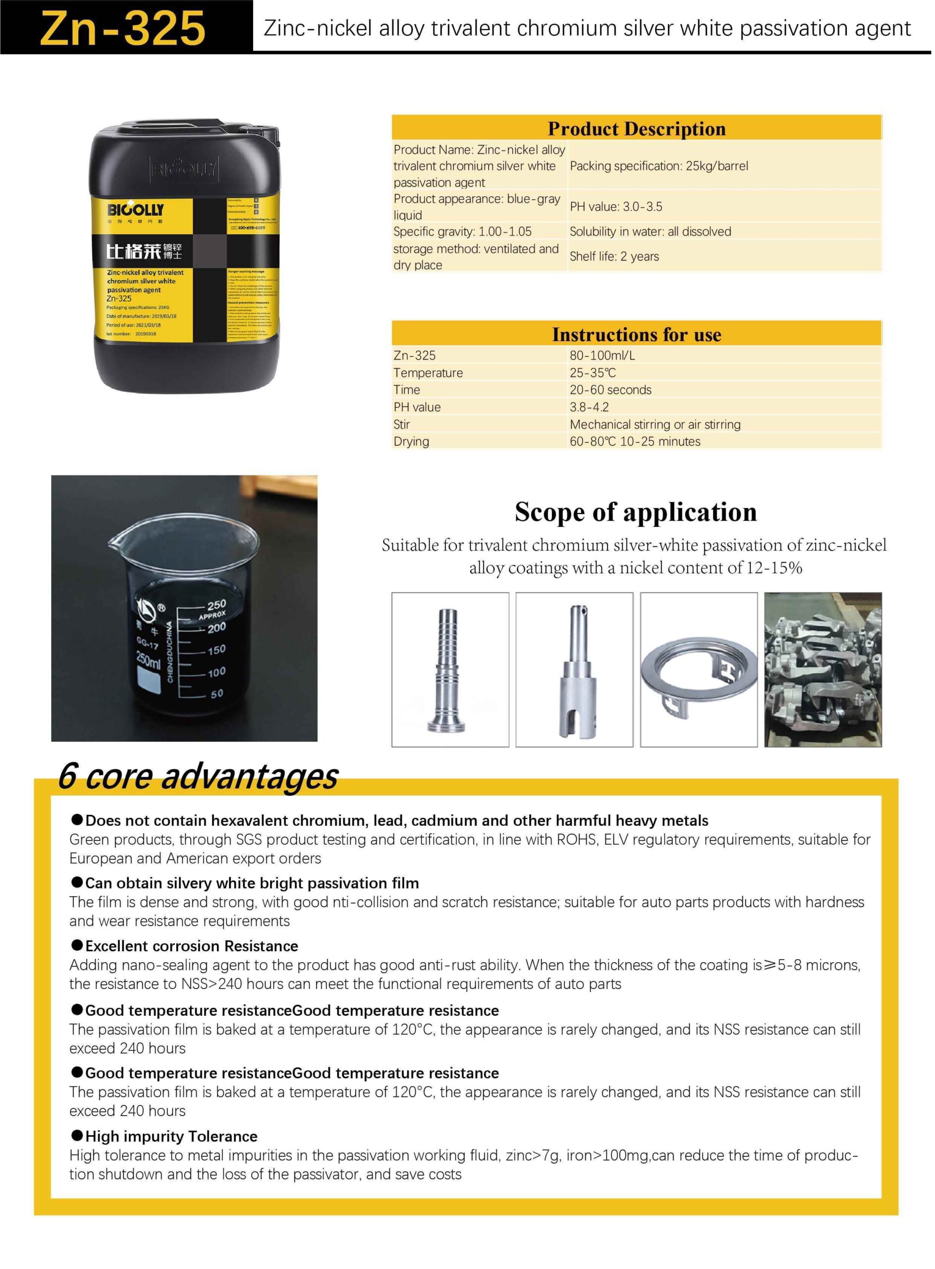 Zinc-nickel Alloy Trivalent Chromium Silver White Passivator Agent Zn-325